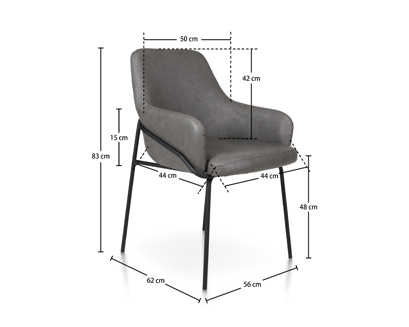 • Tógtha le fráma iarainn láidir, cinntíonn an chathaoir seo marthanacht agus cobhsaíocht. Déantar an suíochán agus an cúltaca as stuáil cúr ard-dlúis, ag soláthar compord agus tacaíocht eisceachtúil. Tá an cumhdaitheoireacht crafáilte as fabraic bhuan, a bhreathnaíonn go hiontach ach go bhfuil sé chomh maith le húsáid laethúil. Cuireann na cosa miotail dubh teagmháil le elegance agus cinntíonn siad go bhfanann an chathaoir bunaithe go daingean.