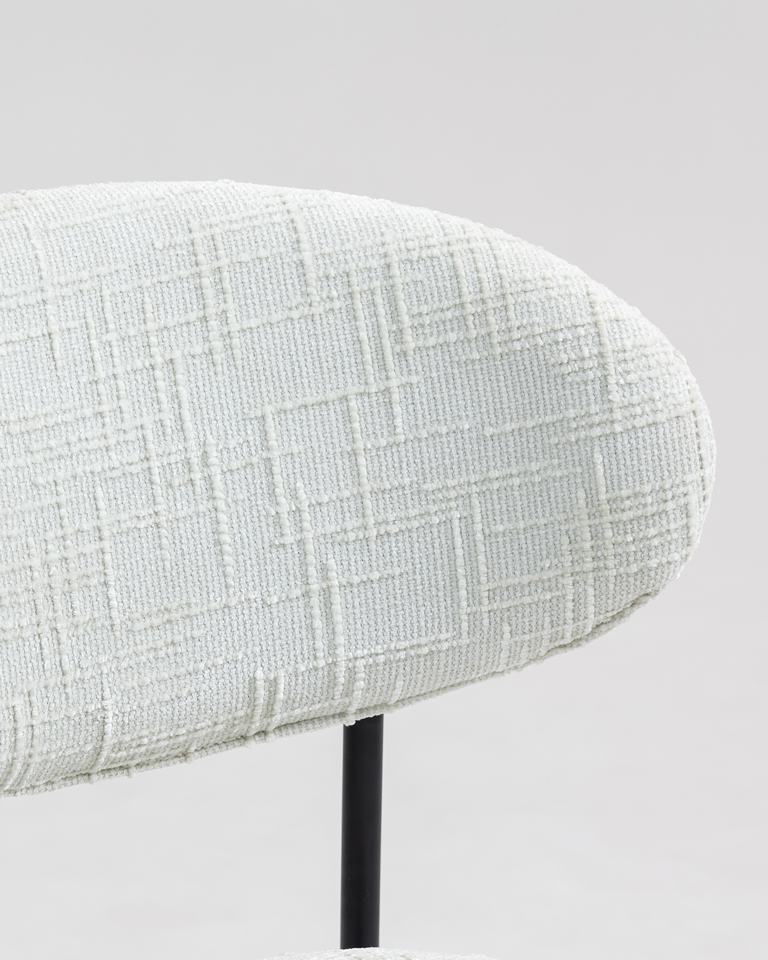 • Agus é ag cuimsiú cumhdaitheoireacht bhán, uigeach ar an suíochán agus ar an gcúlra, cuireann sé teagmháil sofaisticiúil le haon suíomh comhaimseartha. Ní hamháin go soláthraíonn an fráma miotail dubh láidir tacaíocht láidir ach cuireann sé aeistéitiúil íostach, íostach leis.