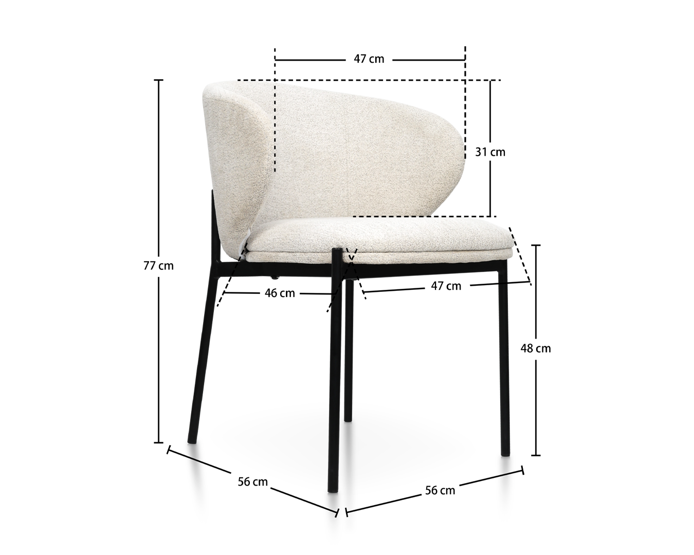 - Méid: W56*D56*H77CM / SH: 48cm $ $