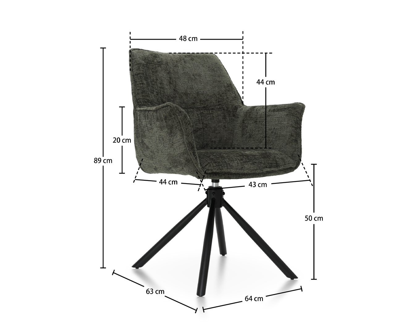 • Tá an chathaoir seo crafáilte le haird ar mhionsonraí, ina bhfuil fabraic sómhar, uigeach a bhraitheann chomh maith agus atá sé. Cinntíonn an bonn miotail láidir cobhsaíocht agus éascaíocht gluaiseachta, rud a fhágann go bhfuil sé foirfe do chomhráite bríomhar agus do dhinnéir phearsanta. Cuir sofaisticiúlacht le do sheomra bia leis an gcathaoir ildánach seo.