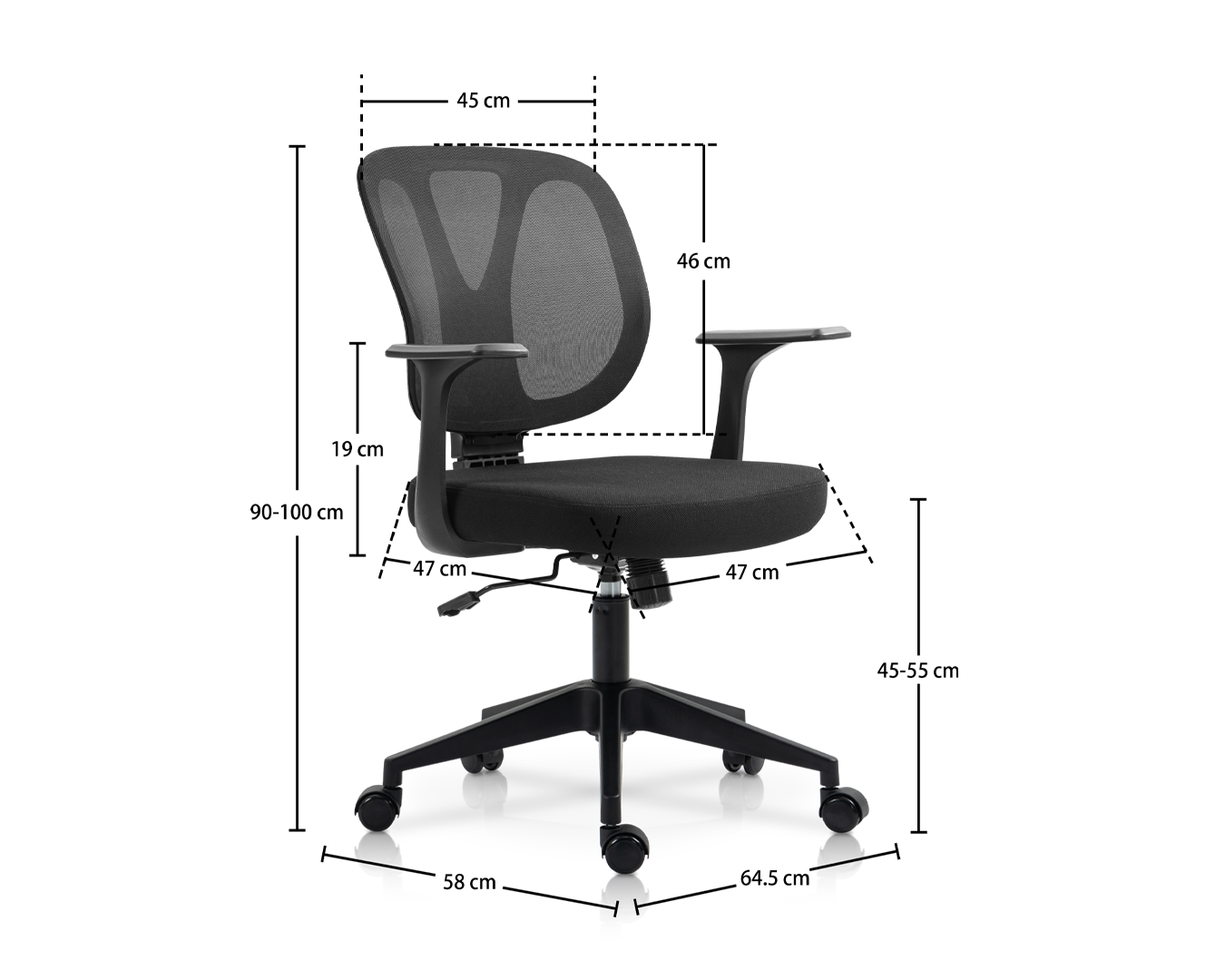 -Méid: W64.5*D58*H90-100 cm / SH: 45-55 cm $ $