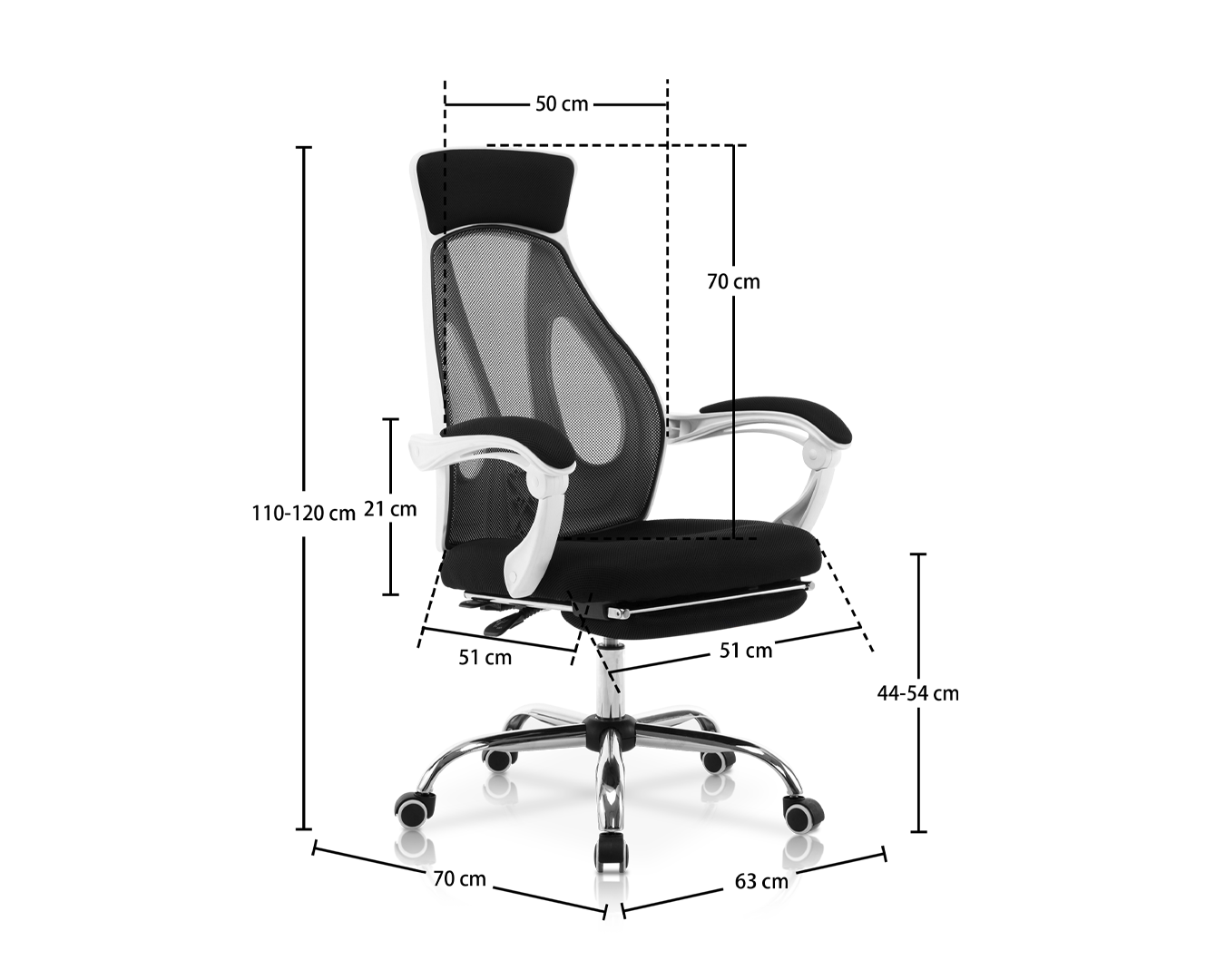 -Méid: W63*D70*H110-120 cm / SH: 44-54 cm $ $