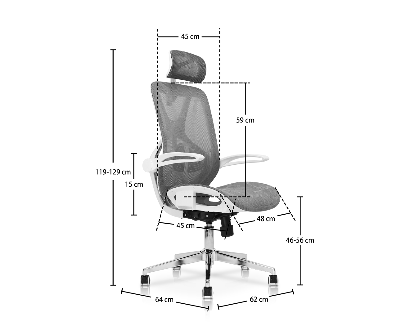 -Méid: W62*D64*H119-129CM / SH: 46-56 cm $ $