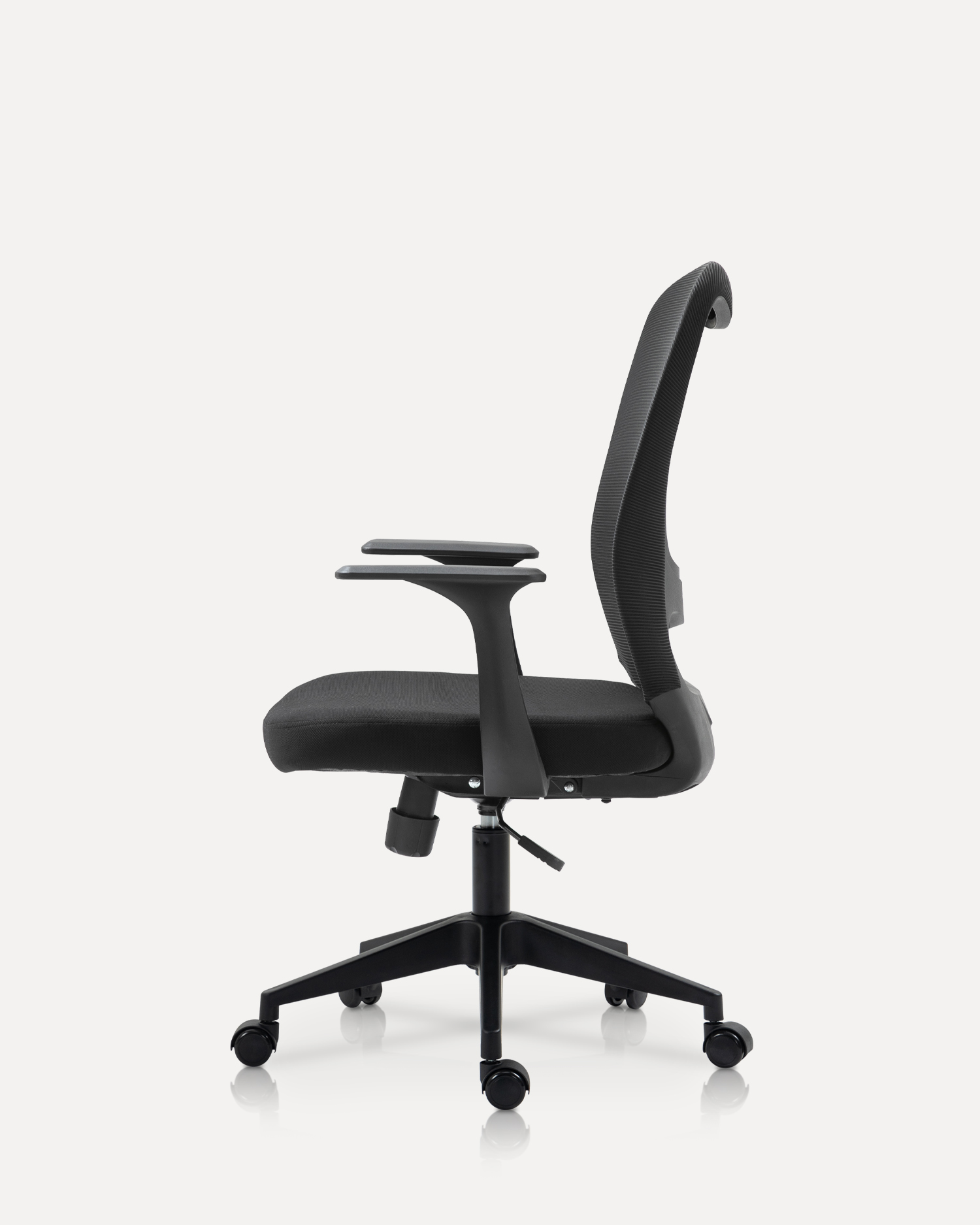 • Tá eirgeanamaíocht i gcroílár dhearadh an chathaoir seo. Ligeann an mheicníocht airde inchoigeartaithe duit an chathaoir a shaincheapadh chun do chuid riachtanas sonrach a chur in oiriúint, ag cinntiú go bhfuil do chosa cothrom ar an talamh agus go bhfuil do ghlúine ag uillinn 90 céim. Is féidir na hairm a choigeartú chun an tacaíocht iontach a sholáthar do do chuid arm, ag laghdú brú ar do ghuaillí agus ar do mhuineál. Cuireann an tacaíocht lumbar a tógadh isteach sa chúltaca staidiúir chuí chun cinn, rud a chuireann le compord agus táirgiúlacht foriomlán.