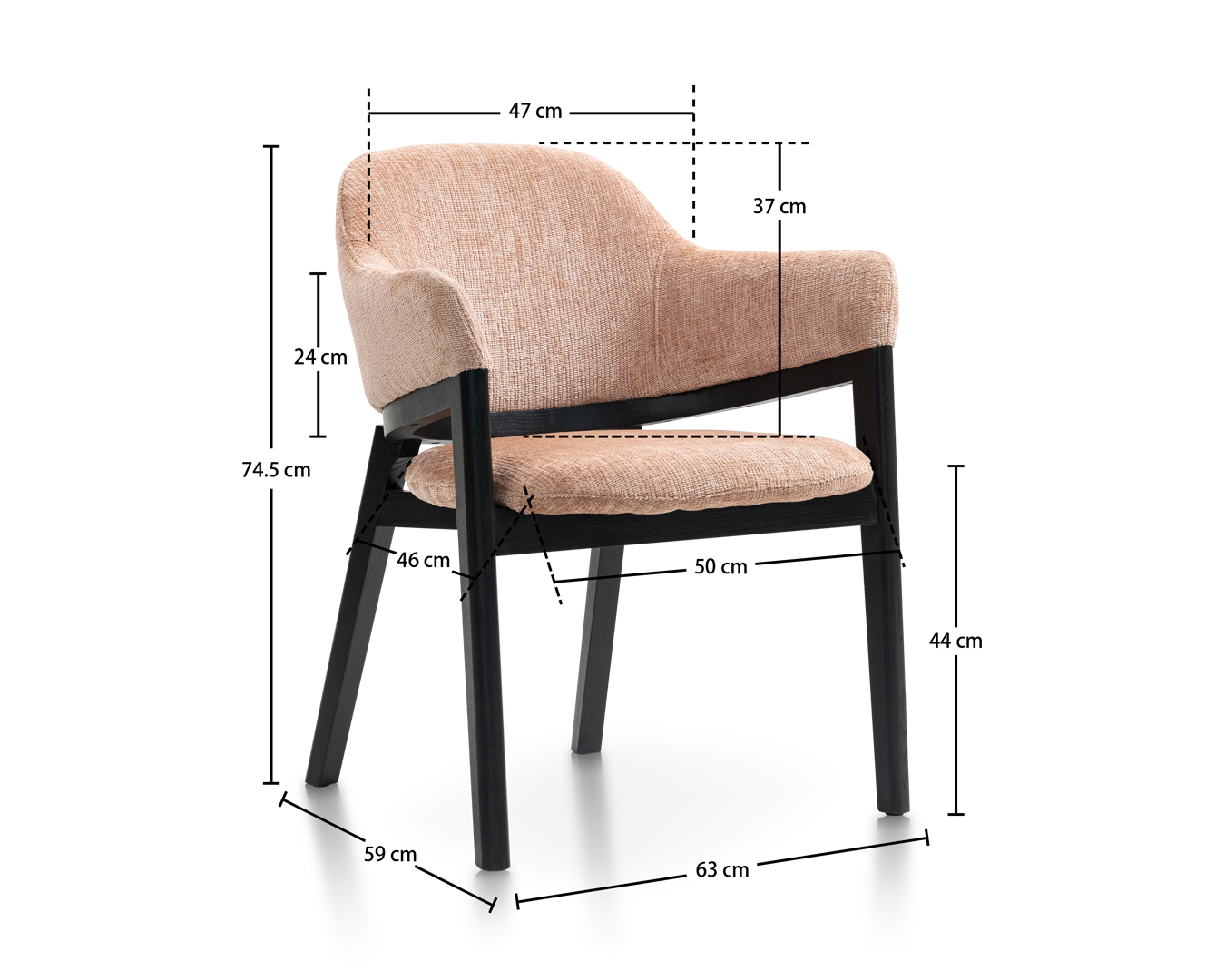 - Méid: W63*D59*H74.5cm / SH: 44 cm $ $