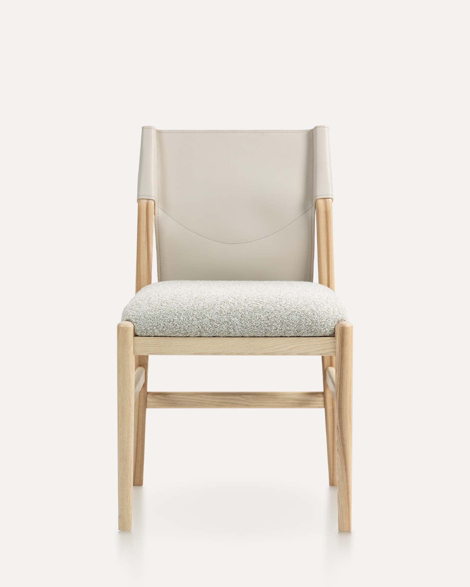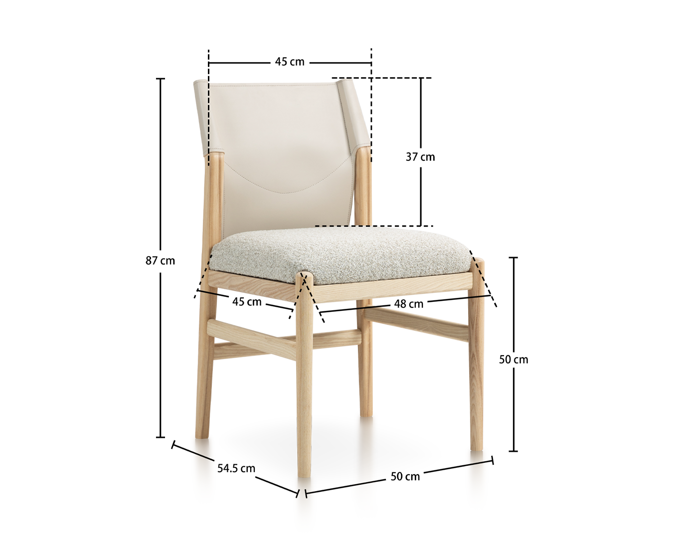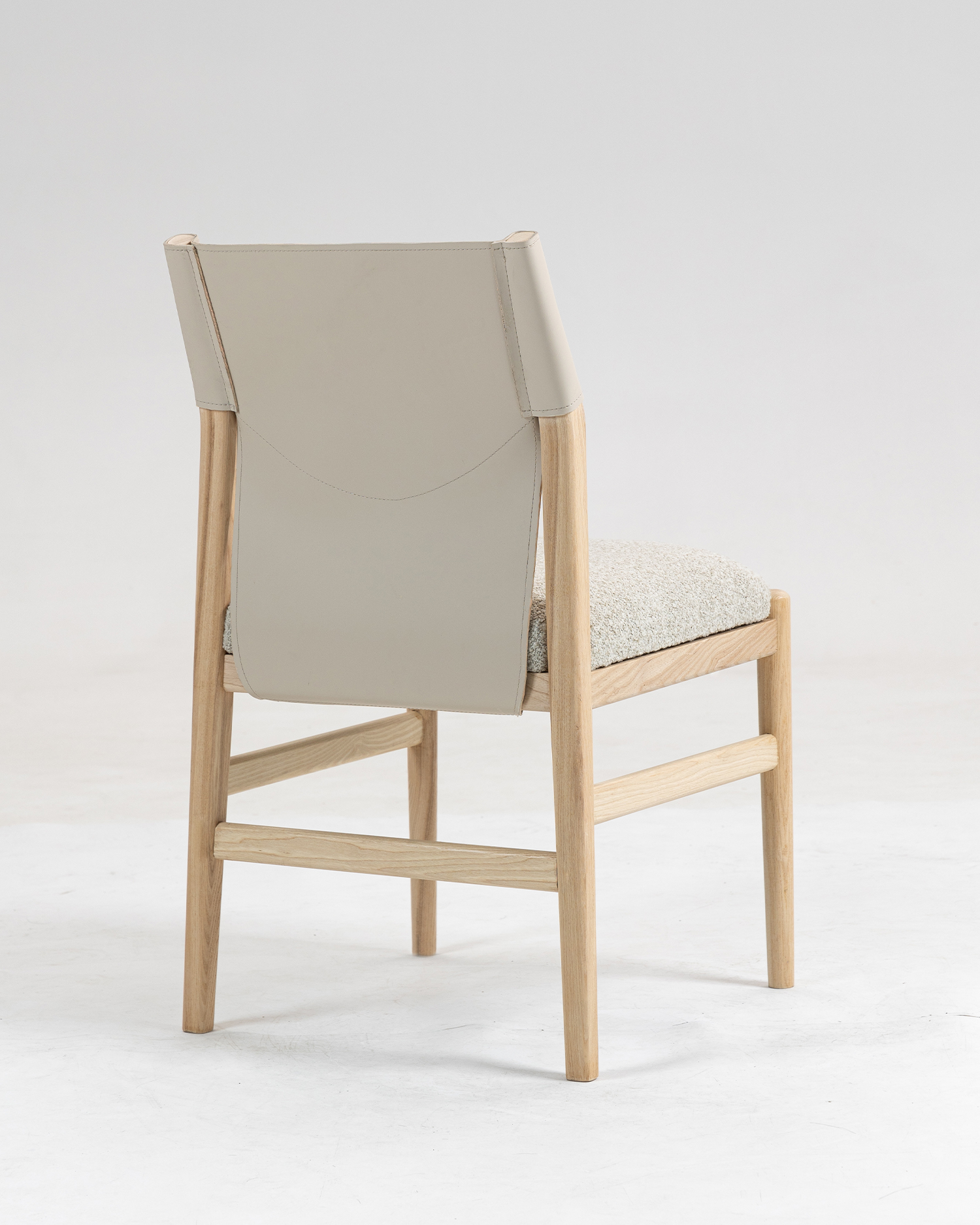 • Taispeánann an fráma atá crafáilte ó adhmad fuinseoige ardcháilíochta, áilleacht nádúrtha agus marthanacht an ábhair, agus a chríochnú réidh agus a phatrúin gráin chaolchúiseacha ag cur teas le haon spás istigh. Soláthraíonn an cúltaca leathair diallait teagmháil sómhar, ag tairiscint stíl agus tacaíocht araon. Comhlánaíonn a uigeacht fhorlíontach agus a dhath saibhir le dearadh foriomlán an chathaoir, rud a chiallaíonn gur rogha iontach é dóibh siúd a bhfuil meas acu ar cheardaíocht bhreá.