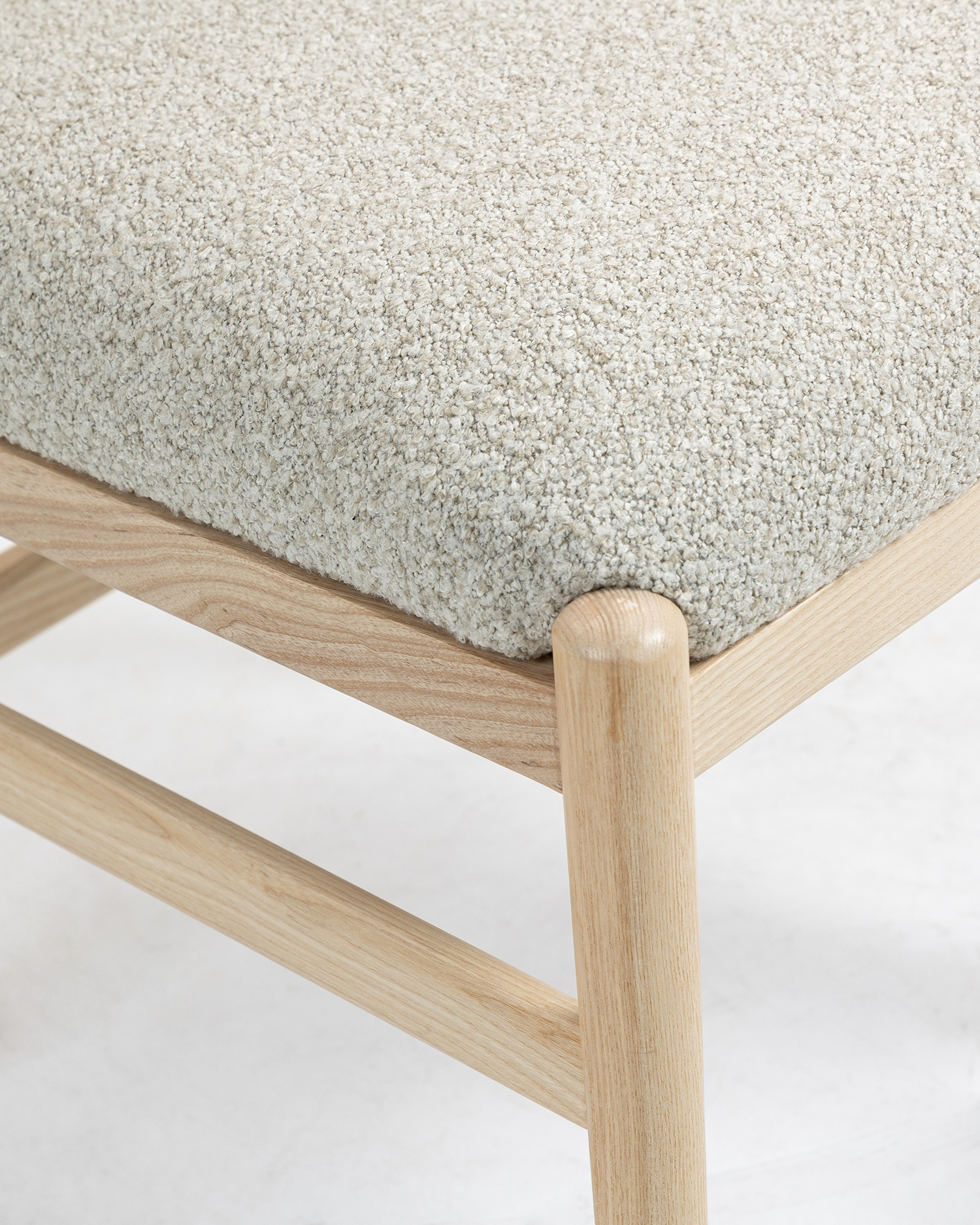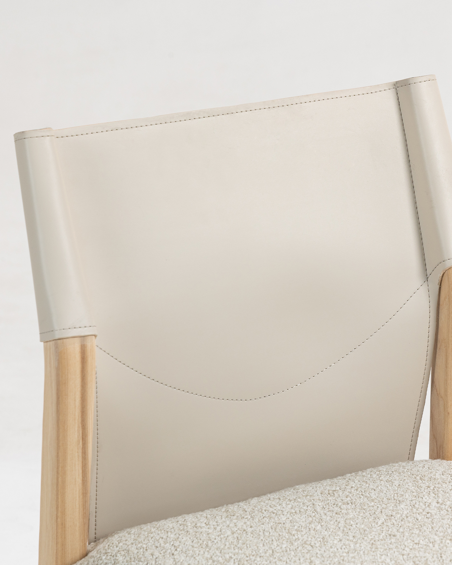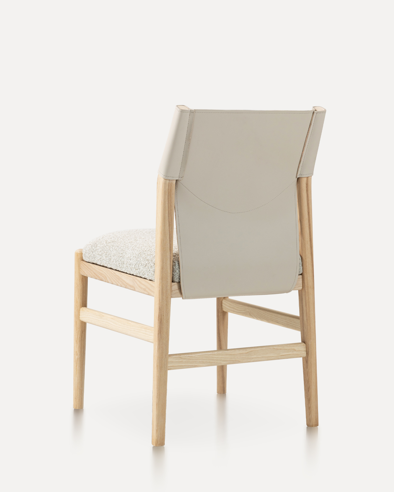 • Taispeánann an fráma atá crafáilte ó adhmad fuinseoige ardcháilíochta, áilleacht nádúrtha agus marthanacht an ábhair, agus a chríochnú réidh agus a phatrúin gráin chaolchúiseacha ag cur teas le haon spás istigh. Soláthraíonn an cúltaca leathair diallait teagmháil sómhar, ag tairiscint stíl agus tacaíocht araon. Comhlánaíonn a uigeacht fhorlíontach agus a dhath saibhir le dearadh foriomlán an chathaoir, rud a chiallaíonn gur rogha iontach é dóibh siúd a bhfuil meas acu ar cheardaíocht bhreá.