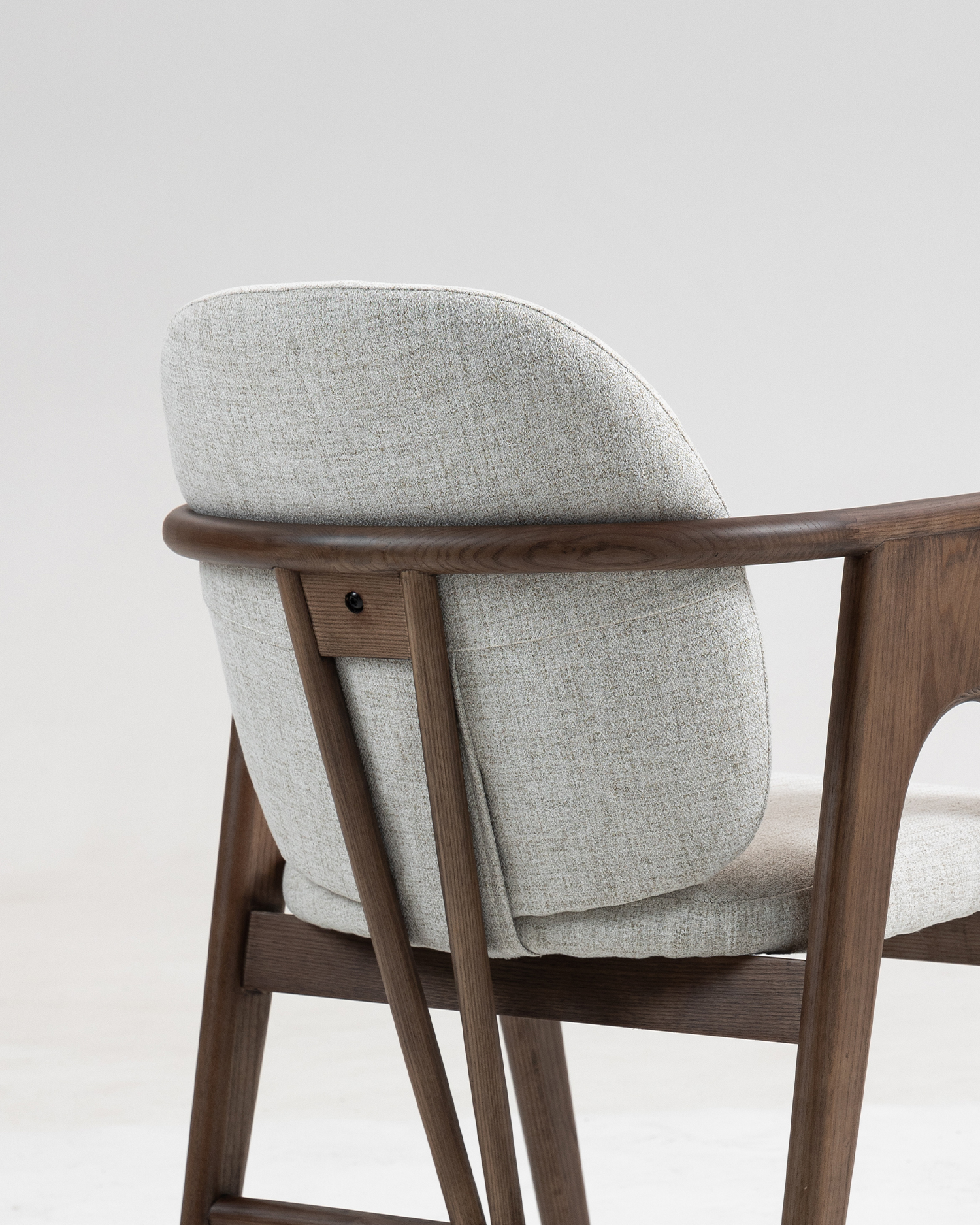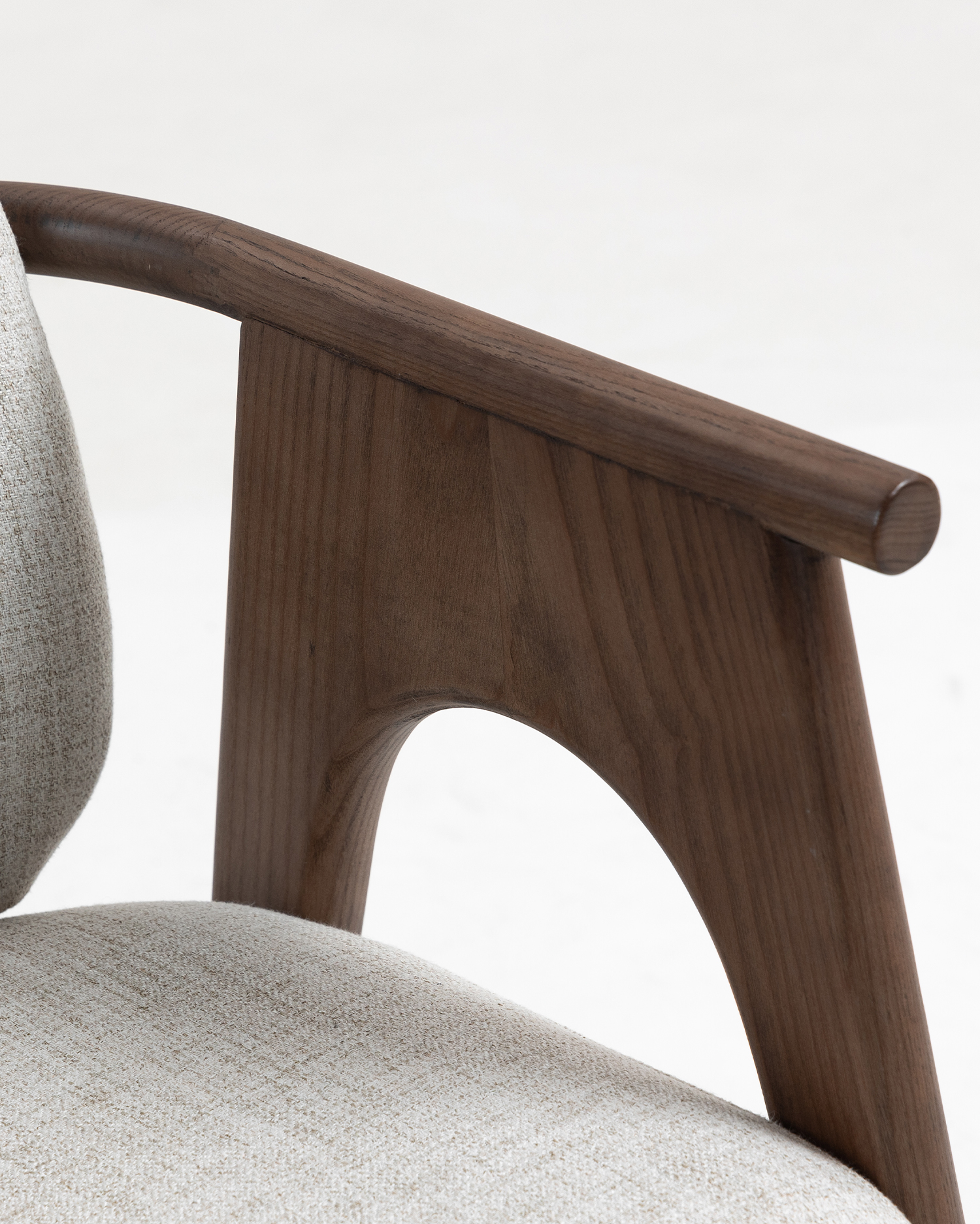• Tá an chathaoir, atá crafáilte ó adhmad fuinseoige ardcháilíochta, sa chathaoir bailchríoch saibhir, te a chuireann le háilleacht nádúrtha an ábhair. Cuireann na armáin cuartha uathúla stíl agus feidhmiúlacht leis, rud a ligeann duit suí siar agus scíth a ligean ar chompord deiridh.