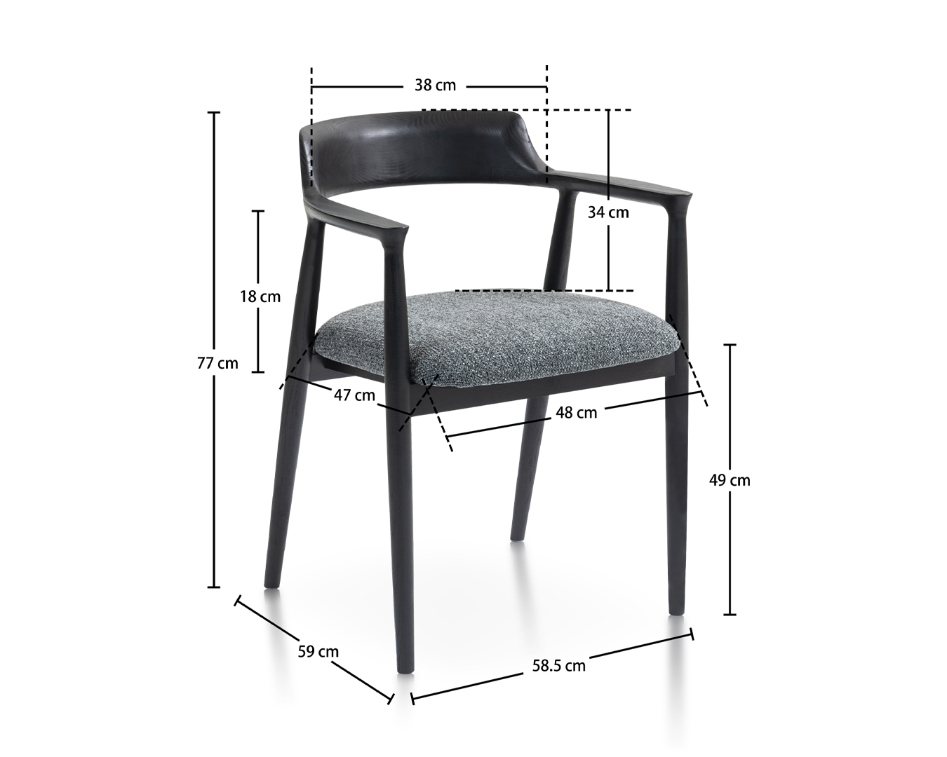 • Cuimsíonn an chathaoir adhmaid armrest íostach dearadh sleek agus sofaisticiúil, le teagmháil le compord cluthar. Is é an chathaoir seo an meascán foirfe de shimplíocht agus de stíl, agus línte fíorálainn agus áilleacht neamhshuimithe adhmaid fuinseoige ann.